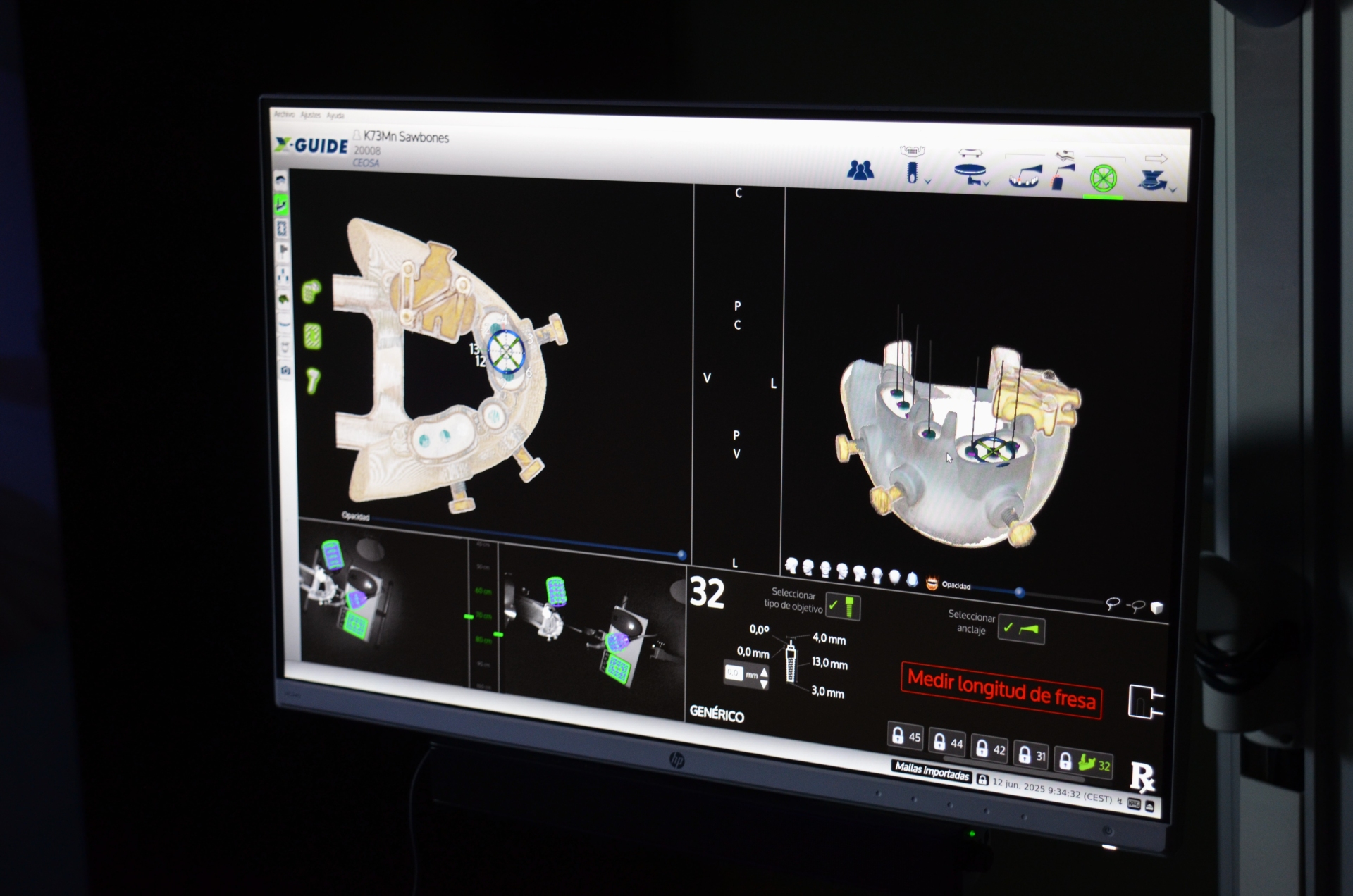 Uno de los puntos clave del módulo fue la introducción a la cirugía navegada con el sistema X-Guide de Nobel Biocare, una tecnología dinámica que permite guiar la colocación de implantes con una precisión milimétrica en tiempo real.